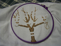 After I finished the blanket I thought it might be nice to cross stitch a family tree for baby. So that is what I am working on now. It is still in pro